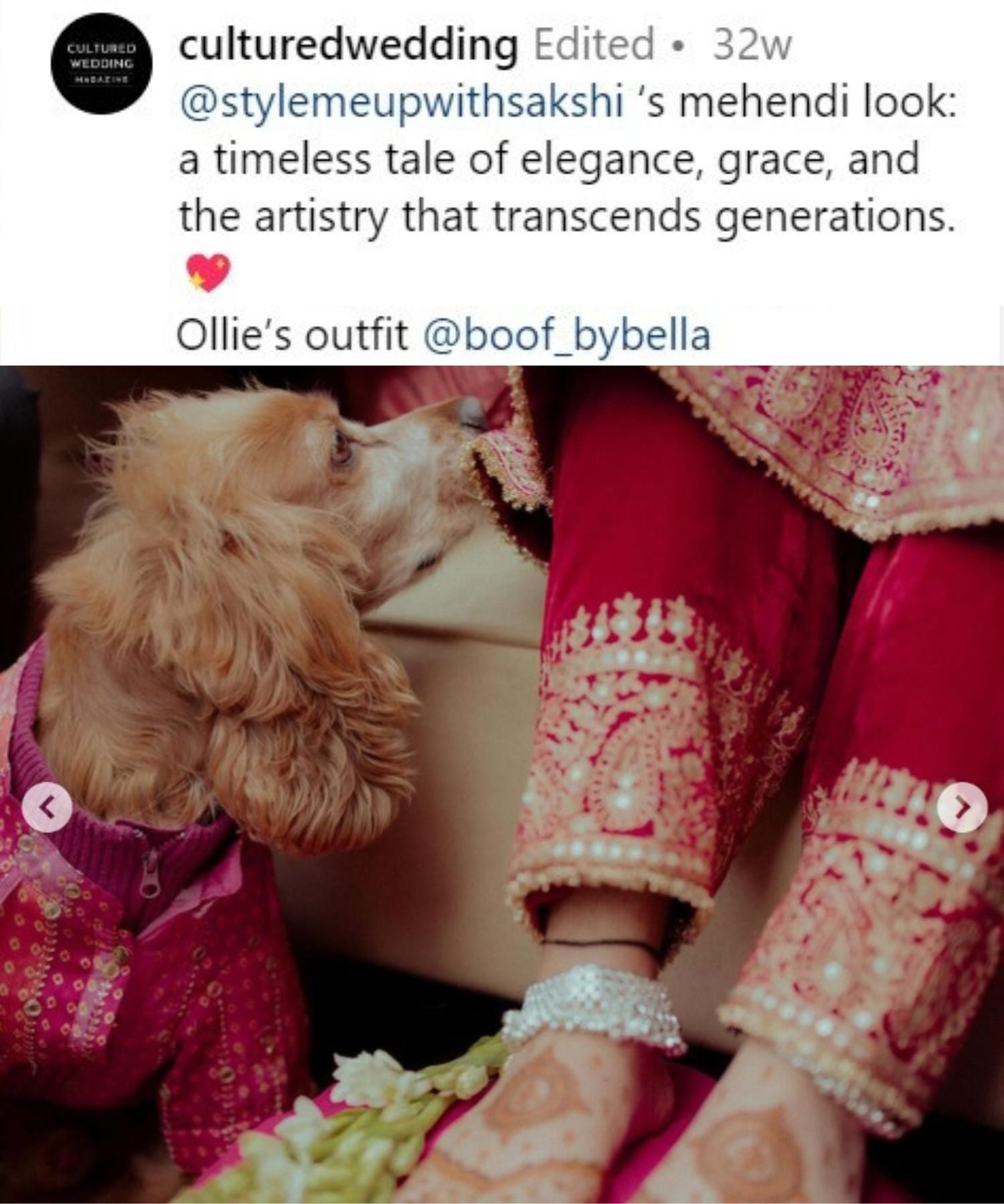 If you're planning to include your beloved pets in your wedding, take inspiration from Sakshi Sindwani, who featured them in mehendi design and had them by her side on the big day. We adored this heartwarming moment of the family coming together!